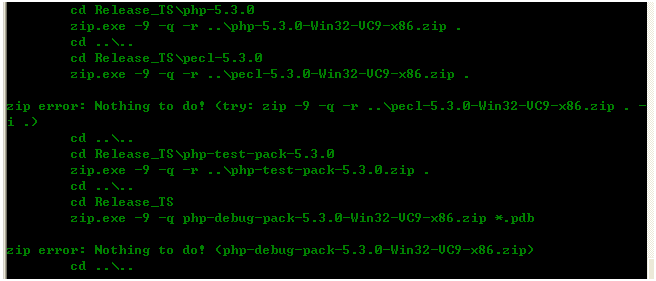 然后另存为UTF-8编码。 - 重新nmake编译,然后用nmake snap编译成最终二进制包。二进制包在php-5.3.0\Release_TS下。可能的名字是php-5.3.0-Win32-VC9-x86.zip